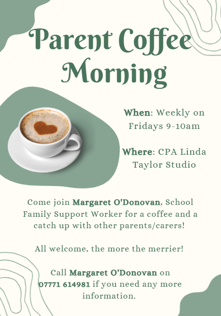 Come along to the CPA Parent Coffee Morning that takes place every Friday, 9-10am in the studio.